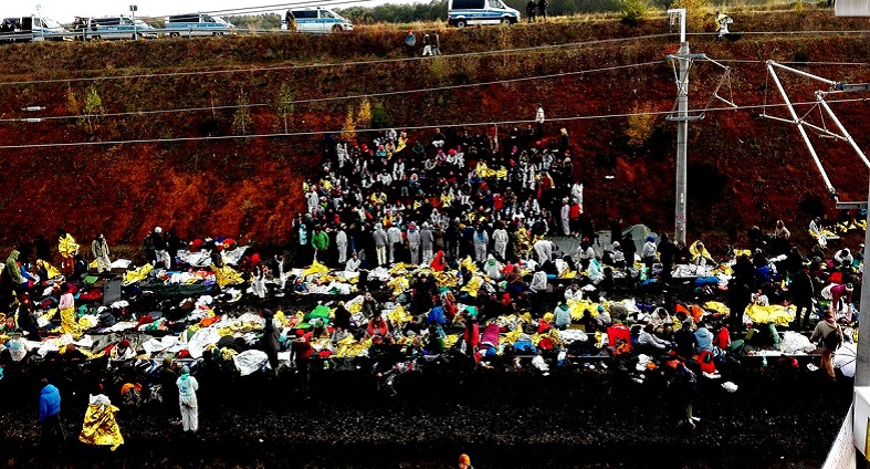 Ellerinde “Sınırları, patriyarkayı, ırkçılığı, homofobiyi, kapitalizmi yakın kömürü değil!” yazılı pankartlarla bir araya gelen yüzlerce işgalci, polisin müdahalesine rağmen raylara ulaştı. Geceyi raylarda geçiren ve sayılarının bini geçkin olduğu tahmin edilen göstericiler, soğuk havayla mücadele ediyor.