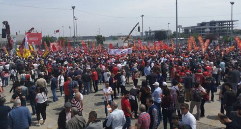 DİSK, KESK, TMMOB ve TTB’nin çağrısıyla yapılan İstanbul 1 Mayıs mitingi bu sene Bakırköy Pazar alanında yapıldı. Mitingin geçen senelere göre daha kitlesel ve coşkulu olduğu görüldü. Mitinge kıdem tazminatının gaspı başta olmak üzere krizin işçi ve emekçiler üzerinde yarattığı sosyal yıkım ve özgürlük yoksunluğuna duyulan öfke damgasını vurdu.