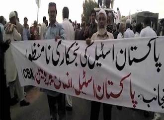 Pakistan’da ülkenin en büyük şehri Karaçi’de çelik işçileri olası özelleştirme saldırısına karşı protesto gösterisi düzenledi.