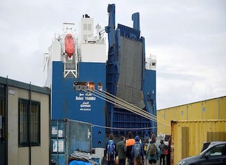 Suudi Arabistan gemisi Bahri-Yanbu’nun günün sonuna kadar Cidde’ye gitmesi beklenirken, teslimat geç kaldı. Geminin İtalya’da tamamen yanaşmasına engel olmak için yapılan başarısız girişimlerden sonra, bugün limana vardıklarında pankart ve protestolar ile karşılandı.