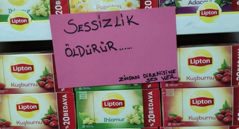 Market sahibi yiyecek ve içecek raflarına açlık grevi ve ölüm oruçlarını anlatan “Cezaevleri ölüm orucunda haberiniz var mı”, “Zindan direnişine ses ver”, “Yaşama ses ver”, Leyla’ya ses ver”, “Leyla Güven 195 gündür direniyor. Bizler onun için ses olalım ki Leyla yaşasın”, “Sessizlik öldürür” yazılı notlar astı.