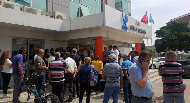 MHP’li belediye geçtiğimiz ay 22 işçinin çıkışını vermiş, işçiler bu kıyıma karşı Demokrasi Meydanı’nda nöbet eylemine başlamış, dün de bu eylemlerini belediye binası önüne taşımışlardı. İşçi kıyımının yasaklanması ve atılan işçilerin işlerine dönmesi talebiyle eylem yapan işçiler, Belediye Meclisi toplantısına katılarak MHP’li belediye başkanı Serkan Acar’a neden iten atıldıklarını soracaklardı.