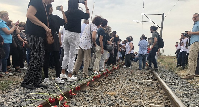 Köy meydanından ellerinde “Sizi seviyoruz” yazılı çelenkle, facianın meydana geldiği yere yürüdüler. Yürüyüş sırasında hayatını kaybedenlerin isimleri tek tek okundu. Kaza yerinde toplananlar rayların üzerine karanfillerle “Sizi seviyoruz” yazılı çelengi bıraktılar.