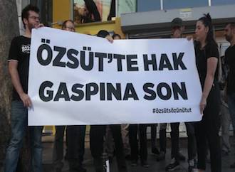 Ellerinde, “Özsüt’te hak gaspına son” yazılı pankart taşıyan işçiler, yine “Haksızlık varsa direniş var”, “Özsüt sözünü tut hakkımızı ver”, “Özsüt işçileri yalnız değildir” sloganları atarak arkadaşlarının gasp edilen tüm hakları verilene kadar eylemlerine devam edecekleri mesajı verdi.