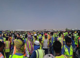 Katar’da göçmen emekçiler Dünya Kupası 2022 şantiyelerindeki kölece çalışma koşullarına karşı iş bıraktı.