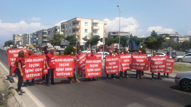 Yerel seçimlerin ardından işten çıkarılan Aliağa Belediyesi işçileri mücadeleye devam ediyor. İşçiler direnişlerinin 92. gününde Çanakkale yolunu trafiğe kapattı. Ellerinde “Aliağa Belediyesi işçisi işini geri istiyor” dövizleri taşıyan işçiler “Atılan İşçiler Geri Alınsın!” sloganı attı.