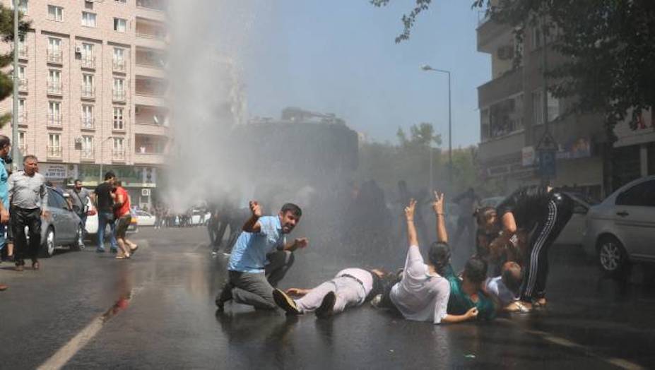 Diyarbakır Büyükşehir Belediyesi Eşbaşkanı Selçuk Mızraklı’nın görevden alınmasına tepki gösteren yurttaşlar, polisin sert müdahalelerine rağmen eylemlerini sürdürüyor. Gösterilerde bazı yurttaşlar yere yatarak, TOMA’ları durdurmaya çalıştı.