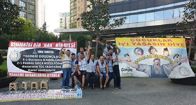 Cargill direnişçileri işe iade davasını kazanmalarına rağmen patronun gereğini yerine getirmek yerine temyiz yoluna gitmesine karşı, direnişlerini Bursa’daki fabrikanın önünden Şirketin Genel Merkezinin bulunduğu İstanbul Ataşehir’deki Paladium Tower önüne taşıdılar.