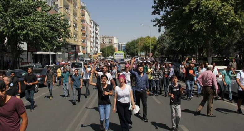 Saat 13:00’te yapılan basın açıklamasından sonra kitle iki gruba ayrılarak Dağkapı Meydanı’nı ve Ofis semtine doğru yürüyüşe geçti. Sur ilçesine doğru “Amed uyuma iradene sahip çık!” sloganları atan grup, bir süre yürüdü. Halkın destek verdiği gruba polisler, TOMA’larla saldırdı. Saldırı sırasında sırasında 5 kişi gözaltına alınırken, grup ara sokaklara dağıldı.