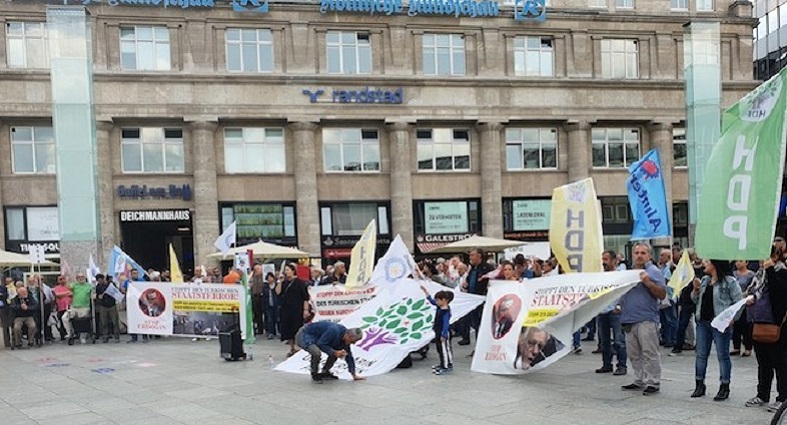 Göçmen ve yerli tüm demokrasi güçlerini faşist AKP/Erdoğan diktatörlüğünün Mezopotamya ve Anadolu halklarına karşı estirdiği terörü ve belediyeleri gasp etme saldırısına karşı Avrupa’nın her alanında kitlesel olarak sokağa çıkmaya ve protesto etmeye çağırıyoruz.