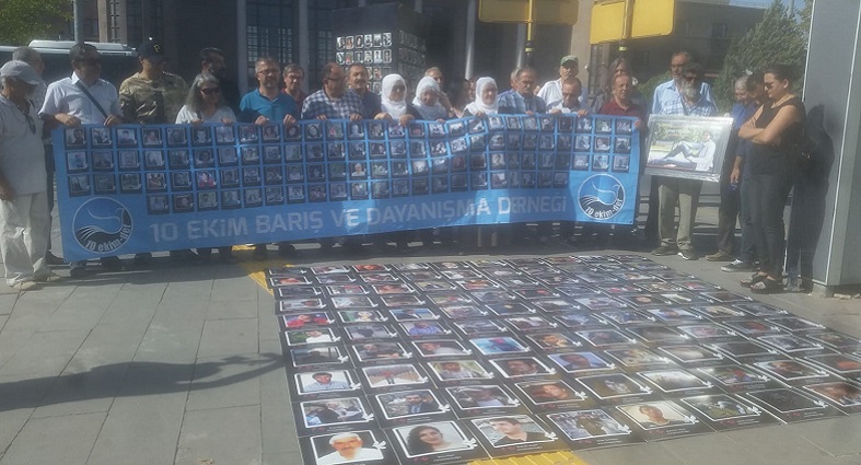 Katliamda hayatını kaybeden 103 insanın fotoğraflarının bulunduğu 10 Ekim Barış ve Dayanışma Derneği’nin pankartının açıldığı 47. ay buluşmasında “10 Ekim’i unutma, unutturma!”, “10 Ekim’in hesabı sorulacak!” sloganları haykırılarak, katliamda ölümsüzleşenler anısına 1 dakikalık saygı duruşu yapıldı.