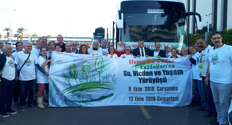 Tutarlı bir ekolojik mücadelenin aynı zamanda haksız-kirli savaşlara karşı çıkmaktan geçtiği ifade edilen açıklamada, savaşların doğa üzerinde yarattığı tahribat örneklerle anlatılarak, “Bu bağlamda, 12 Ekim’de Çanakkale’de Kaz Dağları’nda altın madenlerini ve en son 200 bin ağacın kesilmesi ve kalan ağaçların korunması amacıyla gerçekleştirilmek istenen mitingin iptal edilmesi manidar bir durumdur. Üstelik bu, savaş çığırtkanlarının tam da hedefledikleri bir şeydir. Zira savaşlar, savaşı çıkaran ülkedeki ekonomik, sosyal, ekolojik yıkımların üstünü bir şal gibi örtmenin de aracıdır. Ağaçları korumak istediğini iddia edenlerin Suriye’ye yönelik operasyonu milli birlik ve bütünlük hassasiyetiyle iptal etmeleri utangaç bir tutumla savaşı desteklediklerini gösteriyor. Su ve Vicdan Komisyonu’dan, aynı ‘milli duygular’ı yarın öbür gün Alamos Gold’un lisansını yenileme sürecinde de göstermesi istendiğinde nasıl bir cevap verilecek?” vurgusunda bulundu.