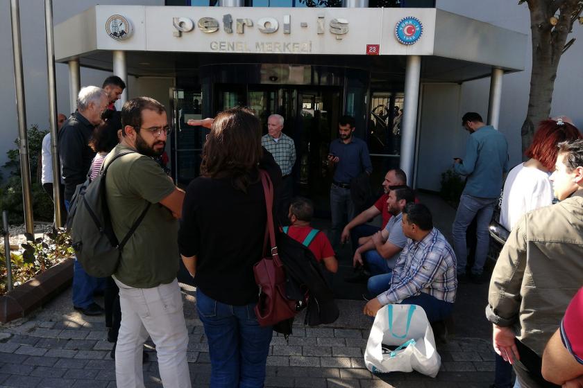 Tekirdağ’a bağlı Çerkezköy’de bulunan EATON Polimer fabrikasında işten atılan işçilerin bir kısmının fabrika önünde başlattığı direniş yaklaşık 1 buçuk aydır devam ediyor. Örgütlü oldukları Petrol-İş Sendikasının kendilerine sahip çıkmadığını ifade eden işçiler, Altunizade’de bulunan genel merkez binası önünde açıklama yaptı. Üye oldukları Petrol-İş Sendikası İstanbul 1 No’lu Şube Başkanı Ahmet Baranlı ile görüşen işçiler, genel merkez yöneticileriyle ise Ankara’da olmaları nedeniyle görüşme yapamadı. Sendikanın yaptıkları direnişi sahiplenmesini isteyen işçiler, “Biz işimiz için direniyoruz, sendikamızı da yanımızda görmek istiyoruz” dedi.