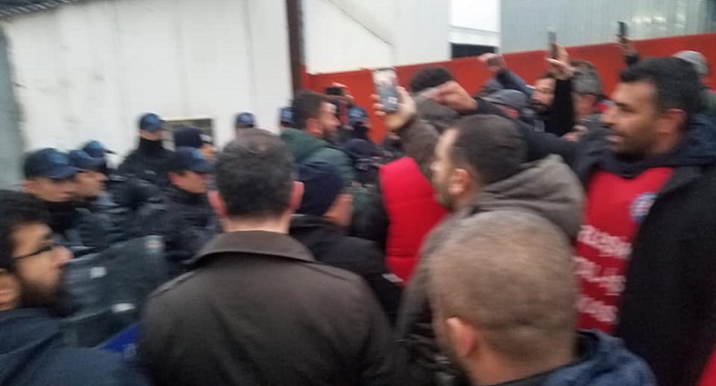 Fabrika önünde toplanan işçiler polis saldırısına uğradı. İşçiler saldırıya karşı geri adım atmadı. Polisle yaşanan arbedeye “İş, ekmek yoksa barış da yok!”, “Sendika hakkımız engellenemez!” sloganlarıyla yanıt verdiler.