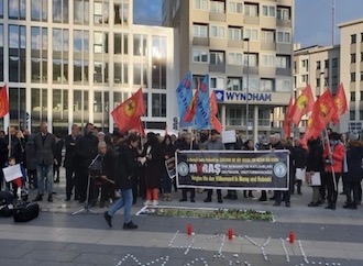 Köln Haupbahnhof Breslauerplatz’da katliamları yaşamını yitirenleri anmak için yapılan miting, saygı duruşuyla başladı.