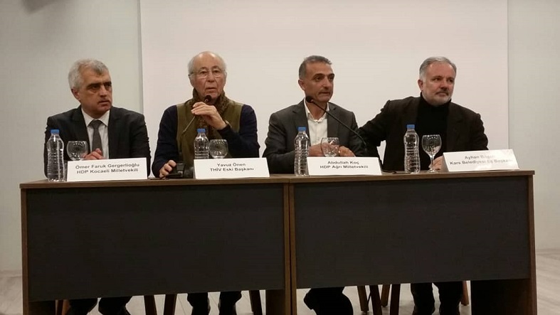 Roboski Katliamı’nın 8’nci yılında Yavuz Önen’in moderatörlüğündeki söyleşide HDP Milletvekili Ömer Faruk Gergerlioğlu, Kars Belediyesi Eşbaşkanı Ayhan Bilgen ve HDP Milletvekili Abdullah Koç ile birlikte cezasızlık politikalarıyla nasıl mücadele edilebileceği konuşuldu