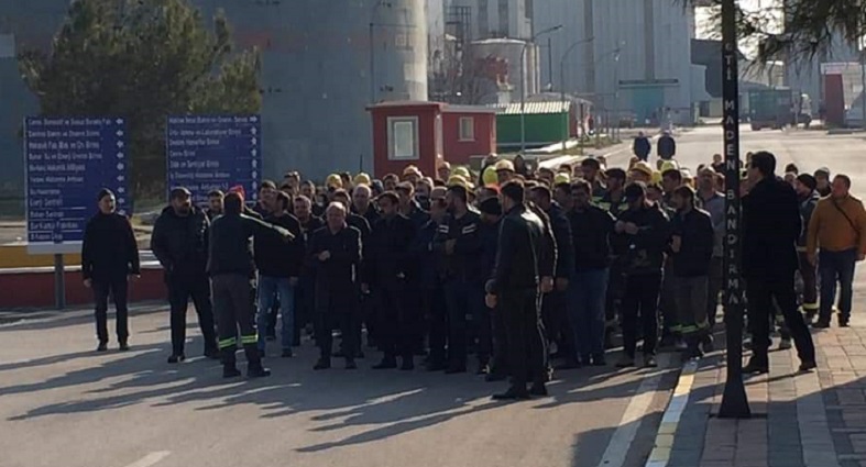 Eti Maden Bandırma İşletme Müdürlüğü Buhar Santrali önünde toplanan Petrol İş Sendikası’na bağlı işçiler, izinler konusunda Genel Müdürlüğün çifte standart uyguladığını gerekçe göstererek protestoda bulundular.