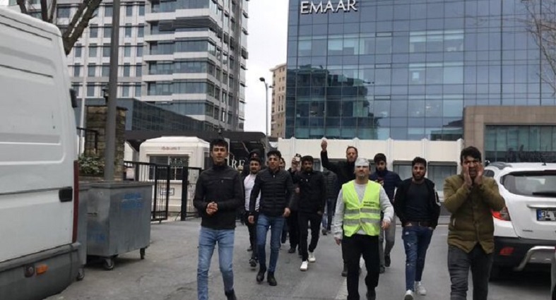 İnşaat-İş günlerdir Emaar’da çalışırken korona nedeniyle işten ayrılan ve haklı fesihten doğan hakları ödenmeyen işçilerin hem alacaklarının ödenmesi hem de birçoğu gurbetçi olan bu işçilerin sağlıklı bir şekilde evlerine gönderilmeleri için çalışıyor. Dün işçilerle gruplar halinde Emaar’daki ana firma konumundaki TAV-SERA’nın önüne yürüyüşler düzenlemiş, firma yetkilileriyle görüşmeler gerçekleştirerek işçilerin alacaklarının ödenmesini sağlamış, taşerona bağlı bazı işçilerin özel araçlarla evlerine dönmelerinin olanağını yaratmıştı.