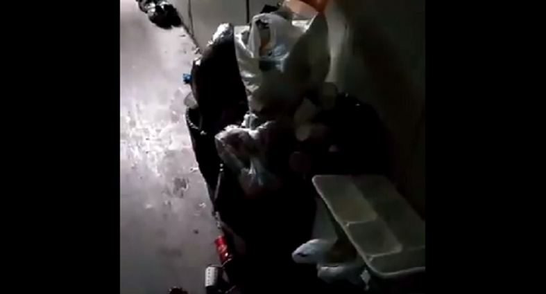 Kayıt yapan işçi ilk önce çöplerin yığılı olduğu koridoru paylaşıyor, ardından berbat durumdaki banyoları ve sekiz-dokuz-on kişinin kaldığını belirtiği odaları kameraya yansıtıyor.