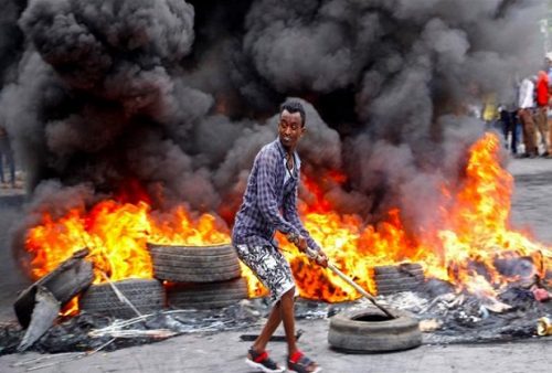 Cuma günü iki gencin sokakta vurularak öldürülmesi üzerine Cumartesi günü öfkeli yüzlerce kişi başkent Mogadişu’da caddede tekerleri ateşe vererek geçişi engelledi.