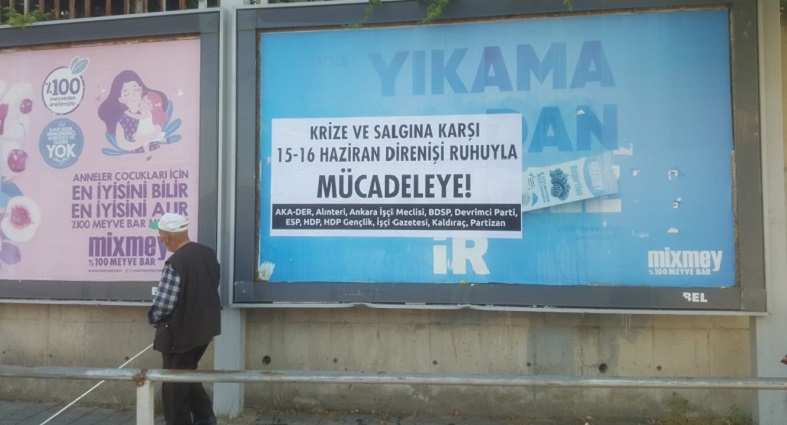 Sincan Organize Sanayii Bölgesi ve Balgat Tekstilciler Caddesi’ne yaygın bir şekilde AKA-DER, Alınteri, Ankara İşçi Meclisi, Bağımsız Devrimci Sınıf Platformu (BDSP), Devrimci Parti, Halkların Demokratik Partisi (HDP), HDP Genclik, ESP, İşçi Gazetesi, Kaldıraç ve Partizan imzalarını taşıyan “Krize ve salgına karşı 15-16 Haziran Direnişi ruhuyla mücadeleye!” ozalitlerini yapıldı.