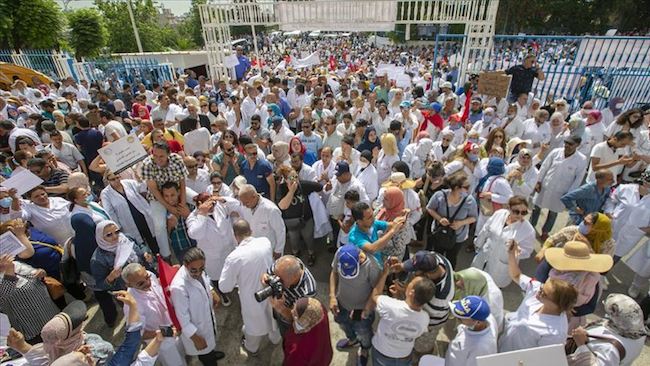 Başkent Tunus’taki Sağlık Bakanlığı binası önünde toplanan protestoculer, „sağlık personeli ile hasta ilişkilerini düzenleyen, yıllık iyileştirmelerin uygulamaya konulmasını öngören ve diğer bazı hakların verilmesini sağlayacak sağlık sektörüne özel bir yasanın çıkarılmasını“ istedi.