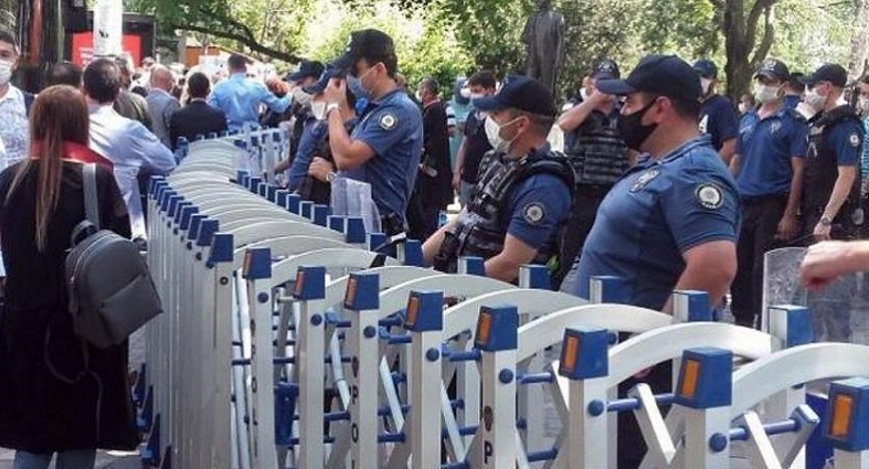 MA’daki habere göre polis haber takibi yapmak için alana gelen basın çalışanlarına “turkuaz kart” soruyor ve kartı olmayanı alana yaklaştırmıyor.