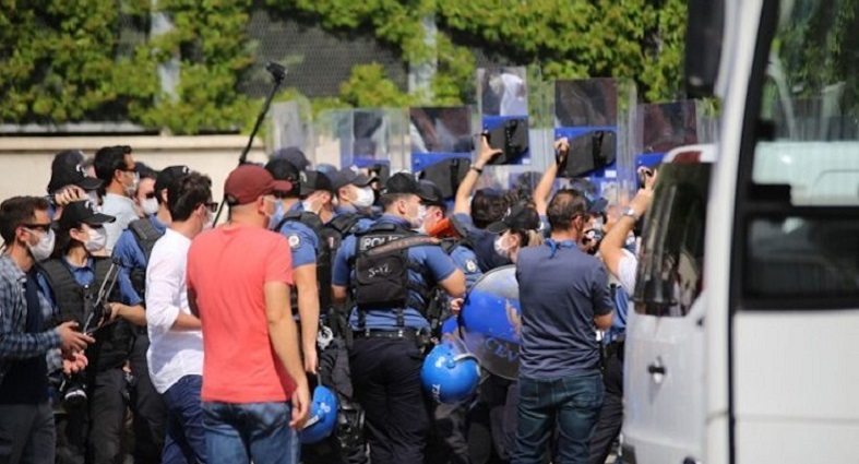 Polis sadece milletvekillerinin müze önüne gitmesine izin verdi. HDP Kadın Meclisi Sözcüsü Ayşe Acar Başaran ve yanındaki milletvekilleri haber yapmaları engellenen gazetecilerden ikisinin çekim yapması için açıklama yapacakları alana alınmasını sağladı. Polisin gazetecilere, “Ben sizin basın özgürlüğünüze bir şey demiyorum, ama çekim yapamazsınız” demesi dikkat çekti!