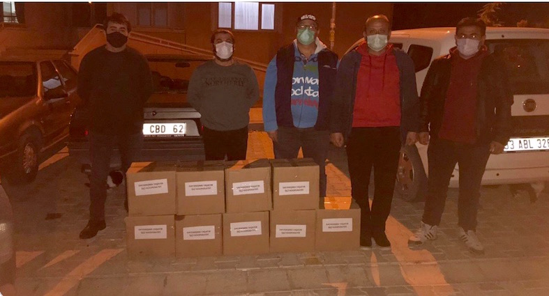 Sohbetlerimiz arasında dayanışma kolilerimizi direnişçi işçilerle birlikte arabadan indirdik. Yasaklar başlamadan önce ayrılmamız gerektiği için işçi kardeşlerimizin yemek ikramlarını “bir dahaki sefere” diyerek geri çevirmek zorunda kaldık.