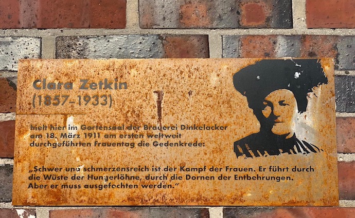 Sosyalist lider Clara Zetkin Stuttgar’ta da kadınlar arasında çalışma yürütmüştür. Şu an oturduğum sokağa paralel sokakta bir bira fabrikasında Clara Zetkin kadın işçilere bir konuşma yapmış…