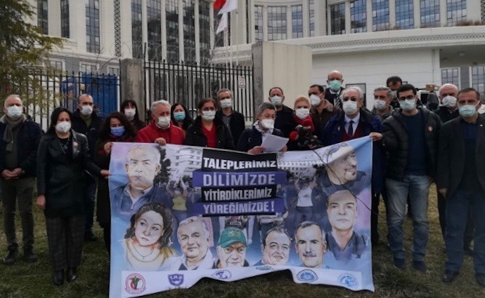 Basın açıklamasında Türk Tabipleri Birliği (TTB), Ankara Tabip Odası (ATO), Sağlık ve Sosyal Hizmet Emekçileri Sendikası (SES) Genel Merkezi ve Ankara Şubesi, Ankara Dişhekimleri Odası, Devrimci Sağlık-İş Sendikası, Türk Hemşireler Derneği, Sosyal Hizmet Uzmanları Derneği ile Tüm Radyoloji Teknisyenleri ve Teknikerleri Derneği’nin yönetici ve üyeleri katıldı.