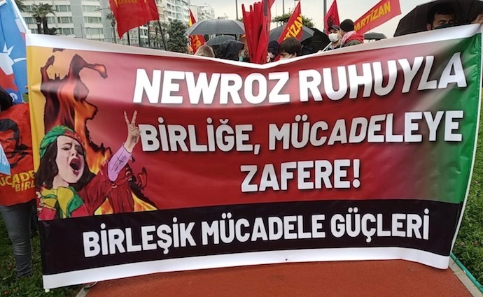 İzmir’de birkaç gün önce izin verilen Newroz kutlamaları, havanın oldukça soğuk ve yağışlı olması nedeniyle katılım önceki yıllara göre belirgin bir şekilde düşüktü. Alanda yaklaşık 3 bin kişi vardı.