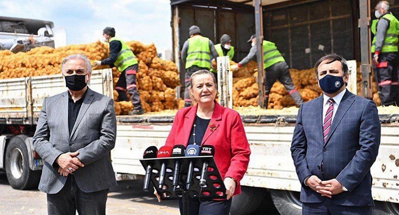 Erdoğan’ın, Tarım ve Orman Bakanlığı’na bağlı Toprak Mahsulleri Ofisi tarafından alım yapılması için talimat vermesinin ardından, üreticiden alınan patates ve soğanlar ücretsiz olarak dağıtılmaya başlandı.