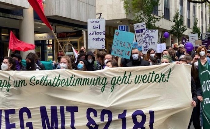 Almanya’da 1871’de kürtaj yasağı olan 218 paragrafının yürürlüğe girmesinin 150. yılı vesilesiyle kadınlar yine sokaklardaydı. Berlin, Köln, Stuttgart, Nürnberg, Mannheim, Villingen kürtaj yasağı karşıtlığının sokaklarda karşılığını bulduğu şehirlerden bazıları.