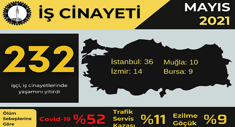 -Mayıs ayında en az 232 işçi hayatını kaybetti.