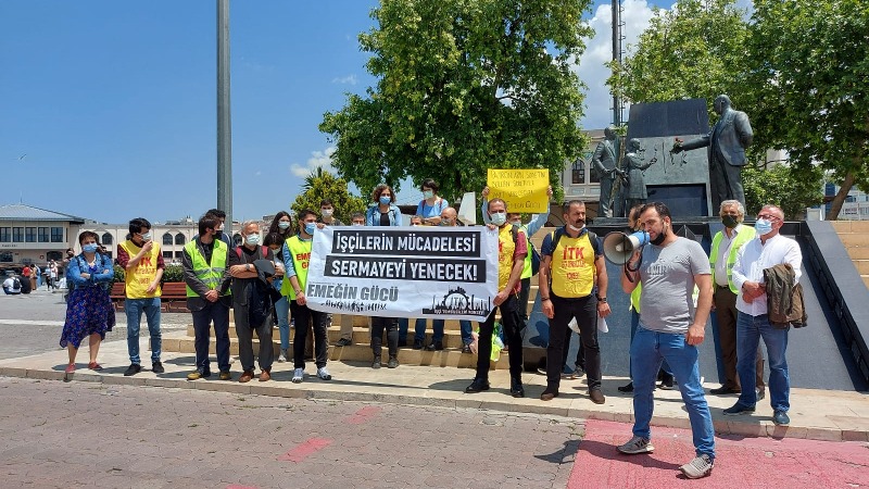 Emeğin Gücü ve İşçi Temsilcileri Konseyi (İTK) üyesi işçiler, geçtiğimiz hafta Hayat Park Gayrimenkul patronlarının aralarında bir kadının da bulunduğu dernek üyesi işçilere saldırısını Kadıköy İskele Meydanı’nda yaptığı açıklamayla protesto etti.