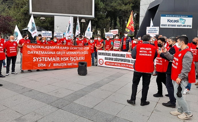 Bugün Gebze Kent Meydanı’nda yapılan basın açıklamasında konuşan DİSK Genel Sekreteri ve Birleşik Metal-İş Genel Başkanı Adnan Serdaroğlu, yaşadıkları sorunları anlamadıkları kimsenin kalmadığını belirterek, patronların saldırılarını koronavirüse benzetti. “Dünyada koronavirüs varyantları ile devam ediyor ama bugün hem Baldur’da, hem de HSK’de işçilerin yeni varyant saldırıları devam ediyor. Biz bu yaşadığımız sorunları anlamadığımız hiçbir yetkili kalmadı” diyen Sedaroğlu, işçilerin feryadına karşı üç maymunun oynandığını ifade etti.