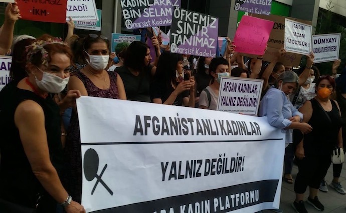 Basın açıklamasının yapılacağı alana sloganlar, alkışlar ve zılgıtlarla gelindi. Burada yapılan basın açıklamasında, AKP’li Cumhurbaşkanı Erdoğan’ın Taliban’la anlaşmaması yönünde çağrı yapıldı. Kadın katillerine, kadınları savaş ganimeti olarak görenlere göz yummayacaklarını, buna karşı mücadele içinde olunacağı dile getirildi.