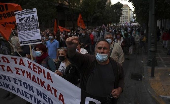 Sintagma Meydanı’nda toplanan binlerce öğretmen hükümet bu yıl getirdiği yasal düzenleme ile öğretmenlerin performans değerlendirilmesine tabi tutulmasını protesto etti. Öğretmen sendikaları ve çeşitli politik örgütler tarafından düzenlenen eyleme yaklaşık 3 bin kişinin katıldığı bildirildi.