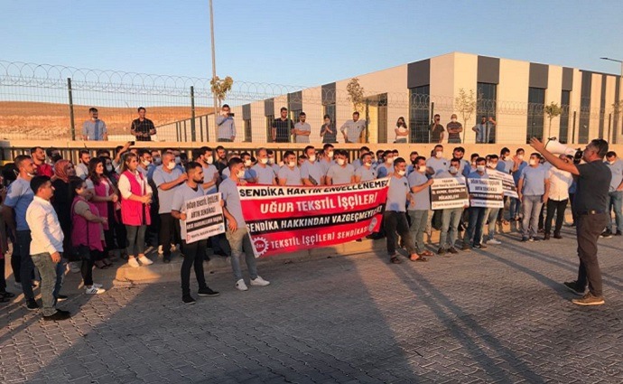 Urfa Organize Sanayi Bölgesi’nde 60 milyonluk yatırımla fabrika açan ve bu girişimini “genç, işsiz ve göçmen nüfusun yoğunluğu” gerekçesine dayandıran Uğur Tekstil, ucuzun da ucuzu emek sömürüsü için ağzının suyunu akıtarak kurduğu fabrikada DİSK Tekstil örgütlenip yetki alınca işçileri Kod 18’den attı, kapıya kilit vuracağını iddia etti!