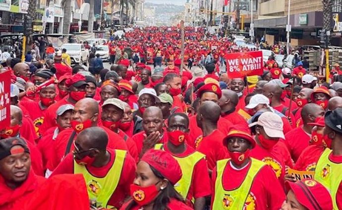 Güney Afrika’nın en büyük metal işçileri sendikası NUMSA, Salı günü süresiz grev başlattı. Ülkenin birçok kentinde işçiler kitlesel yürüyüşler yaptı. Patronların yüzde 4,4 zam dayatmasına karşı sendika yüzde 8, önümüzdeki iki yıl için ise enflasyona ek olarak her yıl için yüzde 2 oranında zam talep ediyor.