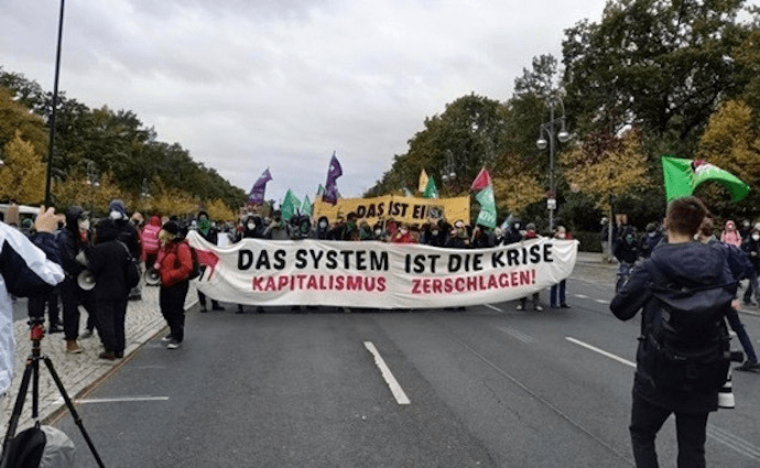 Almanya’da yapılan Genel Seçimler’den dört hafta sonra, koalisyon görüşmeleri öncesinde Fridays For Future (Gelecek İçin Cumalar) çatısı altında toplanan yaklaşık 200 kurum, 22 Ekim Cuma günü, “Bize başka bir seçenek bırakmadınız” şiarı altında birleşerek Berlin’de parti merkezlerinin bulunduğu Brandenburger Tor’da, Federal Meclis Binası’na doğru ilerleyerek bir protesto yürüyüşü gerçekleştirdi. Parti Merkez Binaları’nın giriş kapıları bloke edildi.