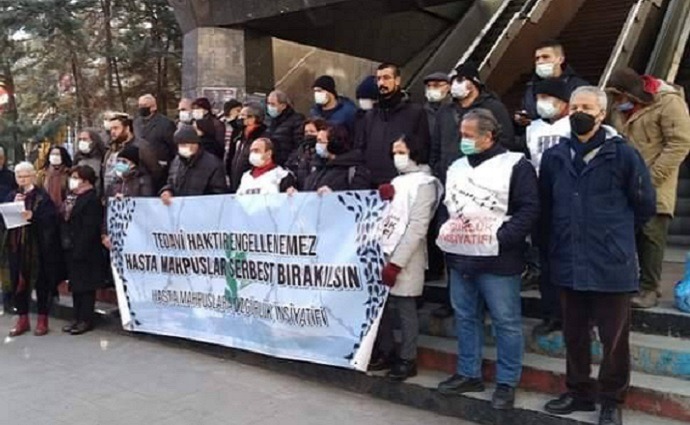 İHD Ankara Şubesi Eş Başkanı Sevil Turgut’un okuduğu açıklamada hapishanelerde 604’ü ağır olmak üzere 1605 hasta mahpusun bulunduğu, bu hastalar içinde durumu çok ağır olanların bile ısrarla içerde tutulduğu kaydedilerek, “Ağır hasta mahpuslar, tedavi edilemeyerek ve tahliyeleri sağlanmayarak adeta ölüme mahkum edilmektedirler” diye belirtildi.