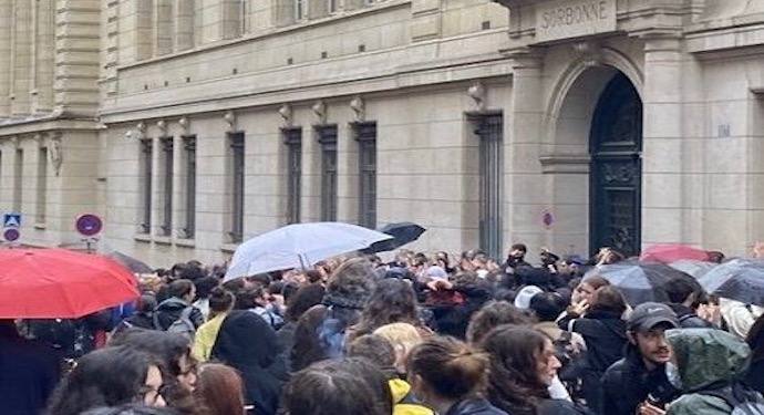Sorbonne’daki işgal ise çarşamba saat 13:00’te üniversitenin avlusunda yapılması planlanan faşizm karşıtı bir toplantıdan kaynaklandı. Öğrenciler toplantıya katılmak için toplandıklarında, üniversite yönetiminin toplantının devam etmesine izin verilmediğini, güvenlik görevlilerinin üniversiteye tüm girişleri kapatarak yüzlerce öğrencinin girişini engellediğini aktardılar.