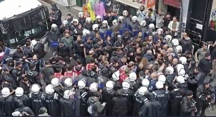 Kadıköy’ün dört bir yanına yayılan ve polisin kontrol etmekte zorlandığı binlerce kişi, Bahariye Caddesi’ne doğru yürüyüşe geçti. Bu sırada vekillerin ve eş başkanların içinde olduğu grubun önü polis tarafından kesilerek yürüyüşe engel olunmak istendi.
