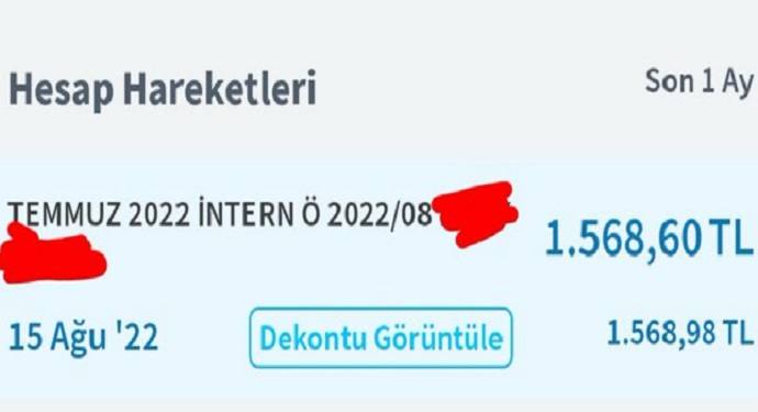 AKP’li Cumhurbaşkanı Erdoğan’ın 18 Temmuz’da yaptığı konuşmada tıp ve diş hekimliği fakültelerinin son sınıf öğrencilerine bundan sonra asgari ücrete eşdeğer bir ücret ödeneceği “müjdesi” de boş çıktı. 36 saat çalıştırılan, görev tanımı belli olmayan, ucuz işgücü muamelesi yapılarak her işe koşturulan intörnlerin hesabına vaadedilen para yatırılmadı. Gerekli düzenleme yapılmadığı için hesaplara yine daha önce aldıkları ve asgari ücretin üçte birine denk düşen 1568 TL yatırıldı!