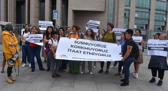 Kadınlar 31 Ağustos’ta Çağlayan’da bulunan İstanbul Adliyesi’nde bir araya gelerek basın açıklaması yaptı. Açıklamada, “Susmuyoruz, korkmuyoruz, itaat etmiyoruz” yazılı pankartın yanı sıra “Çıplak arama işkencedir” dövizleri taşındı. Halkların Demokratik Partisi (HDP) İstanbul milletvekilleri Züleyha Gülüm ve Oya Ersoy ile ESP Eş Genel Başkanı Özlem Gümüştaş, Yeni Demokrat Kadın, Emekçi Kadın ve birçok kadın örgütü temsilcisi açıklamaya katıldı.
