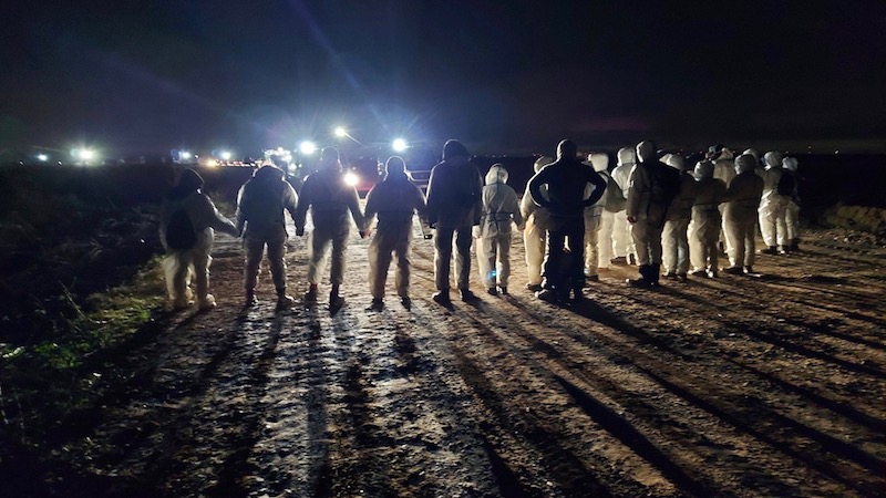 Direnişçiler bütün gece alanı gözetleyip, dozerlerin biçmeye kalkıştığı yerleri tespit ederek 50-100’er kişilik insan zincirleri oluşturmuşlar.