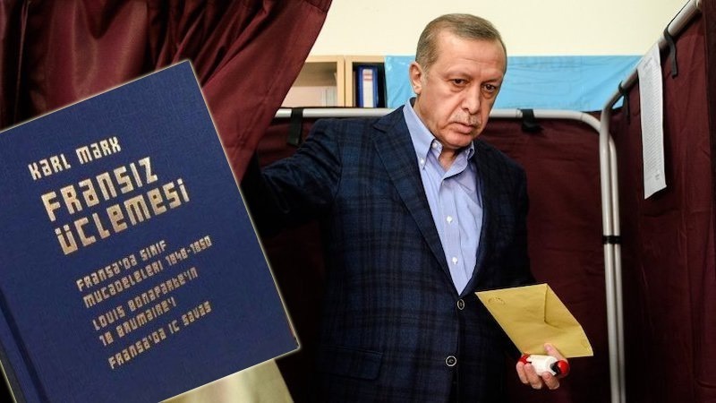 “Ulusal Meclisin 750 [Türkiye’de 600] üyesine bölünen oyları, burada, tersine tek bir bireyde toplanır. Herbir halk temsilcisi yalnız şu ya da bu partiyi şu ya da bu kenti şu ya da bu köprü başını, hatta belki de konu üzerinde de adam üzerinde de çok fazla durmadan herhangi bir yedi yüz ellinci kişiyi seçme gerekliliğini temsil ederken, o ulusun seçtiğidir ve onun seçilmesi eylemi, egemen halkın her dört [Türkiye’de her beş] yılda bir kez oynadığı büyük kozdur. Seçilen Ulusal Meclis ulusla metafizik bir ilişki içindeyken, seçilen cumhurbaşkanı, kişisel bir ilişki içindedir. Ulusal Meclis, tek tek temsilcileriyle, ulusal ruhun çok yönlülüğünü gösterse bile, ulusal ruh cumhurbaşkanında cisimleşir. Cumhurbaşkanı, meclis karşısında bir tür tanrısal hakka sahiptir, o, halkın [Türkiye’de milletin] lütfuyla cumhurbaşkanıdır.” (Louis Bonaparte’ın 18 Brumaire’i, Yordam Yayınları, sf. 164)