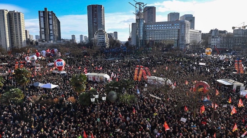 Fransa genelinde yüz binler, “‘Emeklilik reformu’na hayır!” demek için ikinci defa genel grev, blokaj ve sokak gösterileriyle emeklilik yaşının uzatılmasına hayır dedi.